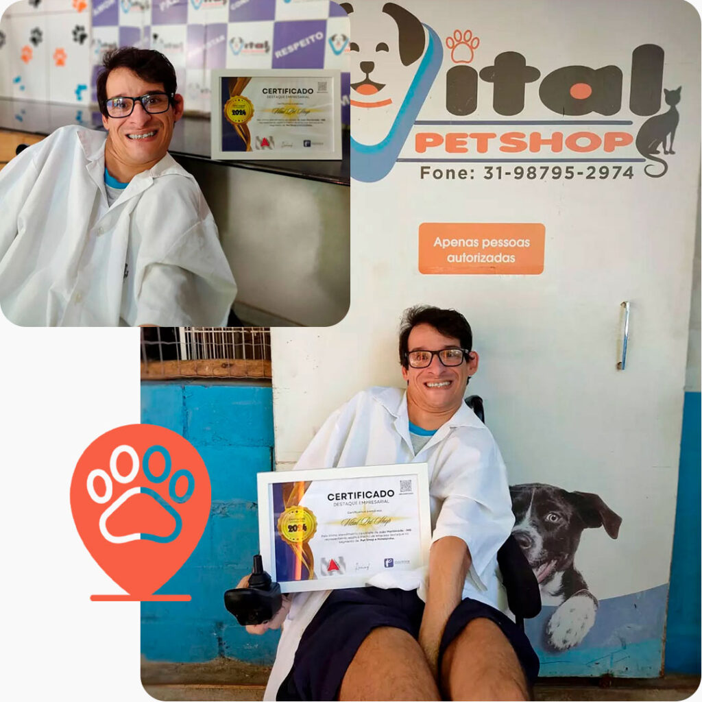 Desde 2018, a Vital Pet Shop Hotelzinho vem se destacando no cuidado animal em João Monlevade e região. Fundada pelo veterinário Victor Hugo Martins Ferreira, nossa empresa une profissionalismo e amor pelos animais, oferecendo serviços especializados que garantem segurança, saúde e felicidade para o seu pet.