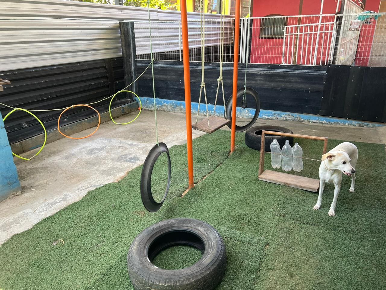 Durante o dia, eles aproveitam um espaço amplo ao ar livre, interagem com outros pets e se divertem no parquinho, garantindo estímulos físicos e mentais essenciais para seu bem-estar.